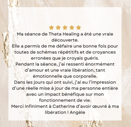 Le ThetaHealing® offre d'infinies possibilités de guérisons dans tous les aspects de notre vie. Vous souhaitez vous libérer de blocages émotionnels, de traumatismes ou de schémas paralysants, vous voulez dépasser vos peurs ou renforcer votre connexion intuitive et spirituelle ? Vous souhaitez améliorer votre santé physique ou psychologique ? Vous souhaitez plus de liberté personnelle ou apprendre à manifester vos projets de vie tout en déployant votre potentiel ? Vous souhaiter rencontrer l'âme sœur ou améliorer vos relations ? Voici quelques exemples parmi tant d'autres ! Contactez-nous si vous souhaitez plus d'information.